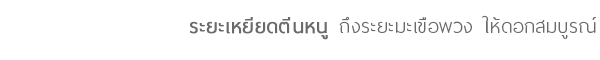 ช่วงระยะเหยียดตีนหนู ถึงระยะมะเขือพวง ให้ดอกสมบูรณ์ ทางใบฉีดพ่นด้วย 1. ปิดตา ยืดช่อ (ตรา คนเหล็ก) 250 ซีซี. 2. จัมโบ้ แคล (ตรา คนเหล็ก) 200 ซีซี. 3. แอปโซ ผสมเกษร 200 ซีซี. * (อัตราที่แนะนำผสมน้ำ 200 ลิตร) ทางดินใส่ปุ๋ย สูตร 15-15-15 ผสม ปุ๋ยสูตร 25-7-7 ผสม ดินดี ตราคนเหล็ก
