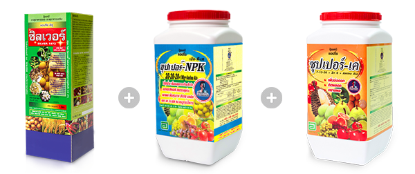 ช่วงระยะทำไหล เพิ่มจำนวนไหล ให้ไหลแข็งแรงสมบูรณ์ ทางใบฉีดพ่นด้วย 1. ซิลเวอร์ (ตรา คนเหล็ก) 200 ซีซี. 2. ซุปเปอร์ เอ็นพีเค (ตรา คนเหล็ก) 1 กิโลกรัม 3. ซุปเปอร์ เค ( ตรา คนเหล็ก) 1 กิโลกรัม * (อัตราที่แนะนำผสมน้ำ 200 ลิตร) ทางดินใส่ปุ๋ย สูตร 15-0-0 ผสม ปุ๋ยสูตร 25-7-7 ผสม ดินดี ตราคนเหล็ก
