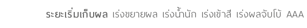 ช่วงระยะเริ่มเก็บผลผลิต เร่งขยายผล เร่งน้ำหนัก เร่งเข้าสี เร่งผลจัมโบ้ AAA
