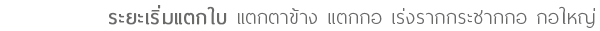 ช่วงระยะเริ่มแตกใบ แตกตาข้าง แตกกอ เร่งรากกระชากกอ กอใหญ่ ทางใบฉีดพ่นด้วย 1.จัมโบ้ ซีล (ตรา คนเหล็ก) 200 ซีซี. 2. สังกะสี (ตรา คนเหล็ก) 200 ซีซี. 3. แอปโซ ซุปเปอร์ NPK (ตรา คนเหล็ก) 1 กิโลกรัม * (อัตราที่แนะนำผสมน้ำ 200 ลิตร) ทางดินใส่ปุ๋ย สูตร 15-0-0 ผสม ปุ๋ยสูตร 25-7-7 ผสม ดินดี ตราคนเหล็ก